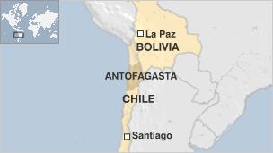 Un mapa de Chile y Bolivia.